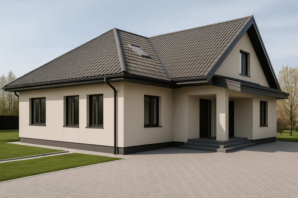 It is a modern wooden house, designed on the basis of high precision prefabricated elements. The treated C16/C24 timber, combined with the system of beams and roofing elements, ensures excellent structural behaviour and thermal insulation. The use of glued timber and D4 adhesive offers moisture resistance and longevity over time, while the flexibility of the construction facilitates rapid erection and ecological sustainability of the building.