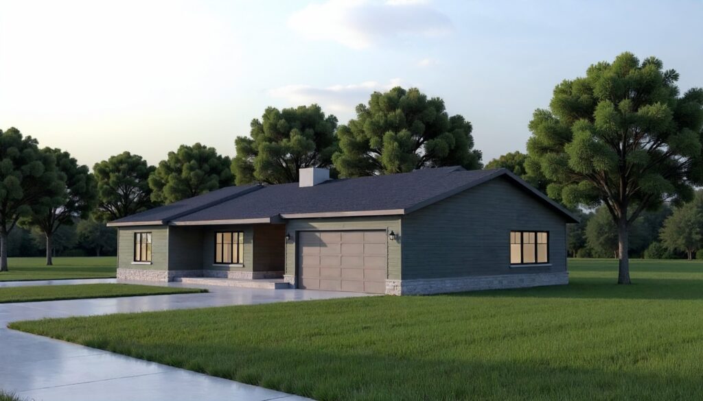Μια σύγχρονη, μονοώροφη κατοικία επιφάνειας 164 m², σχεδιασμένη με σεβασμό στο φυσικό περιβάλλον. Συνδυάζει τη θερμή αίσθηση του ξύλου στην όψη με καθαρές, minimal γραμμές, επικλινή στέγη και ενεργειακά αποδοτικά κουφώματα.